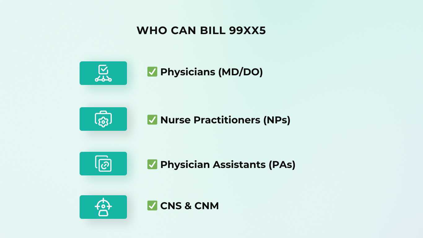 Who Can Bill CPT 99XX5? (Eligible Providers)